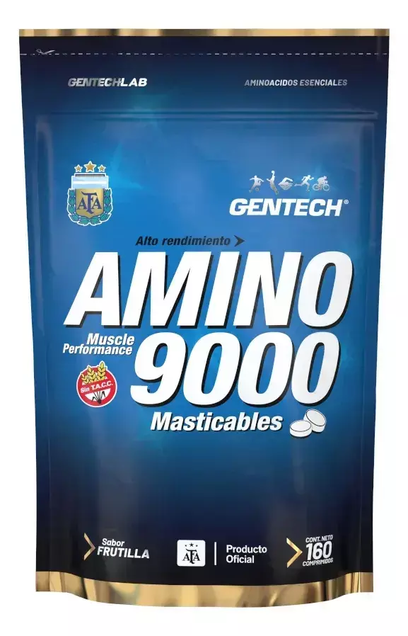 mpulsá tu bienestar con Gentech Amino 9000. Tabletas masticables de alta calidad diseñadas para acompañar tu ritmo activo con un delicioso sabor frutilla