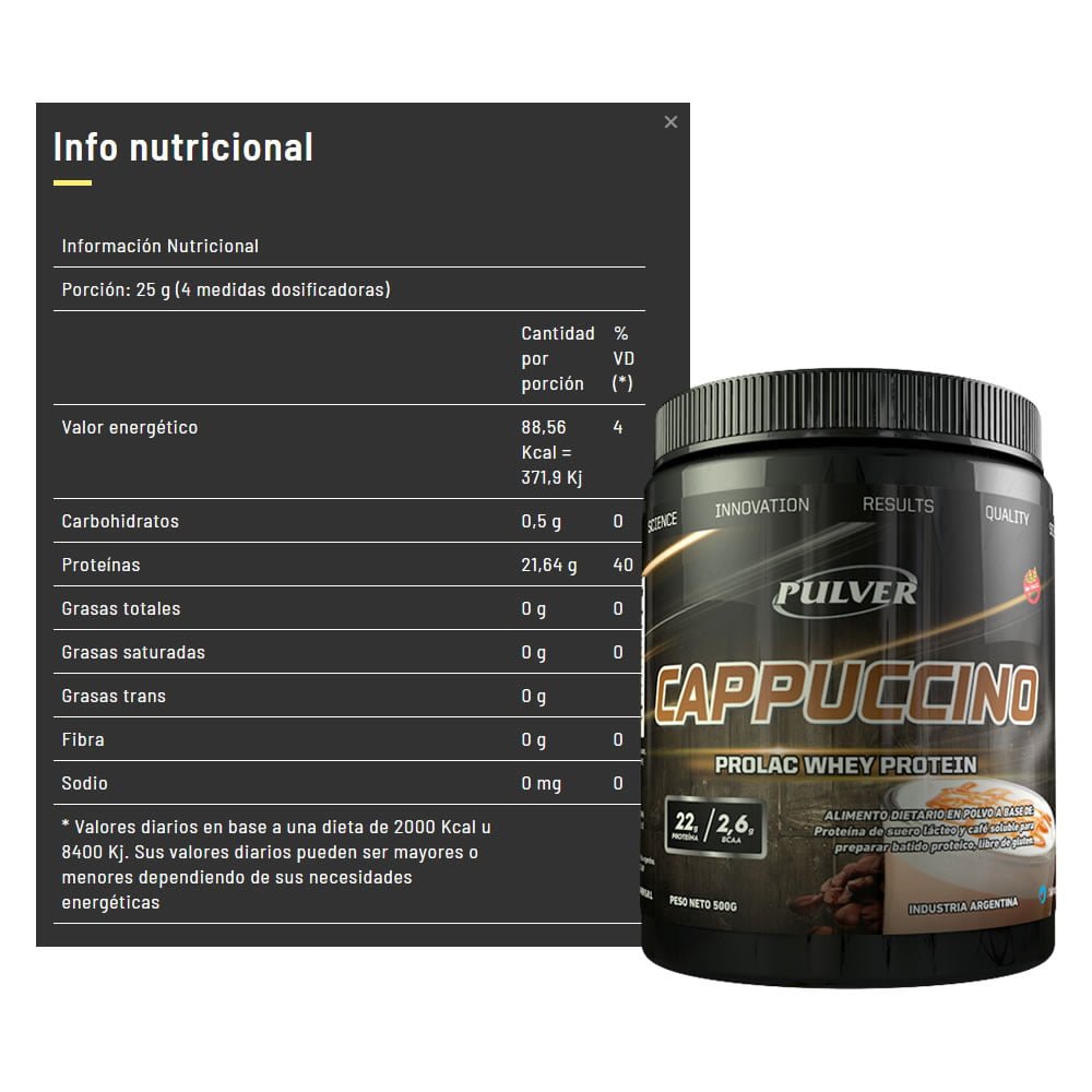 Información nutricional - Proteína Prolac de Pulver